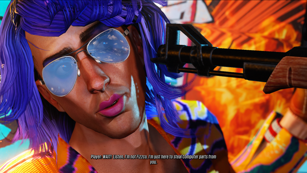 Несколько дней назад мне остро захотелось поиграть в какую-нибудь яркую, упоротую, не сильно старую экшеновую игрушку с приятным геймплеем, которую можно быстро пройти. Я провела некоторое время в поиске игр с нужным вайбом и от отчаяния уже стала снова поглядывать на Postal 4 и ребут Saints Row, которые есть pure kaka, но всё-таки имеют немного вайба, но в итоге наткнулась в реддитском обсуждении игр, похожих Saints Row, упоминание Sunset Overdrive. Игра приглянулась мне визуально, и я решила заценить. (Я же новый комп собрала, чтобы в игры 10+летней давности на нём играть. x'D)